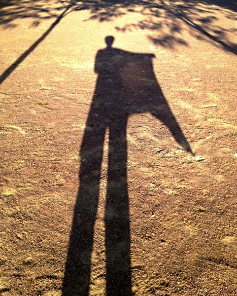 She pulls out her cape, gives it such a shake that it snaps in the wind.
